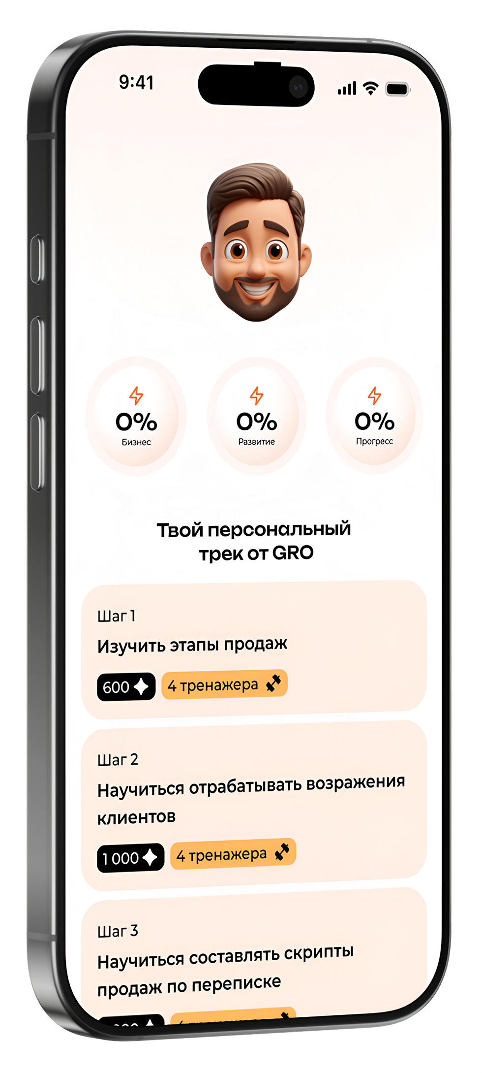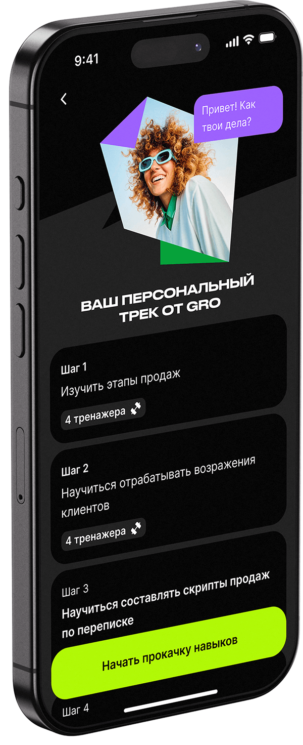 GRO запоминает твой прогресс и помогает выбрать следующий шаг